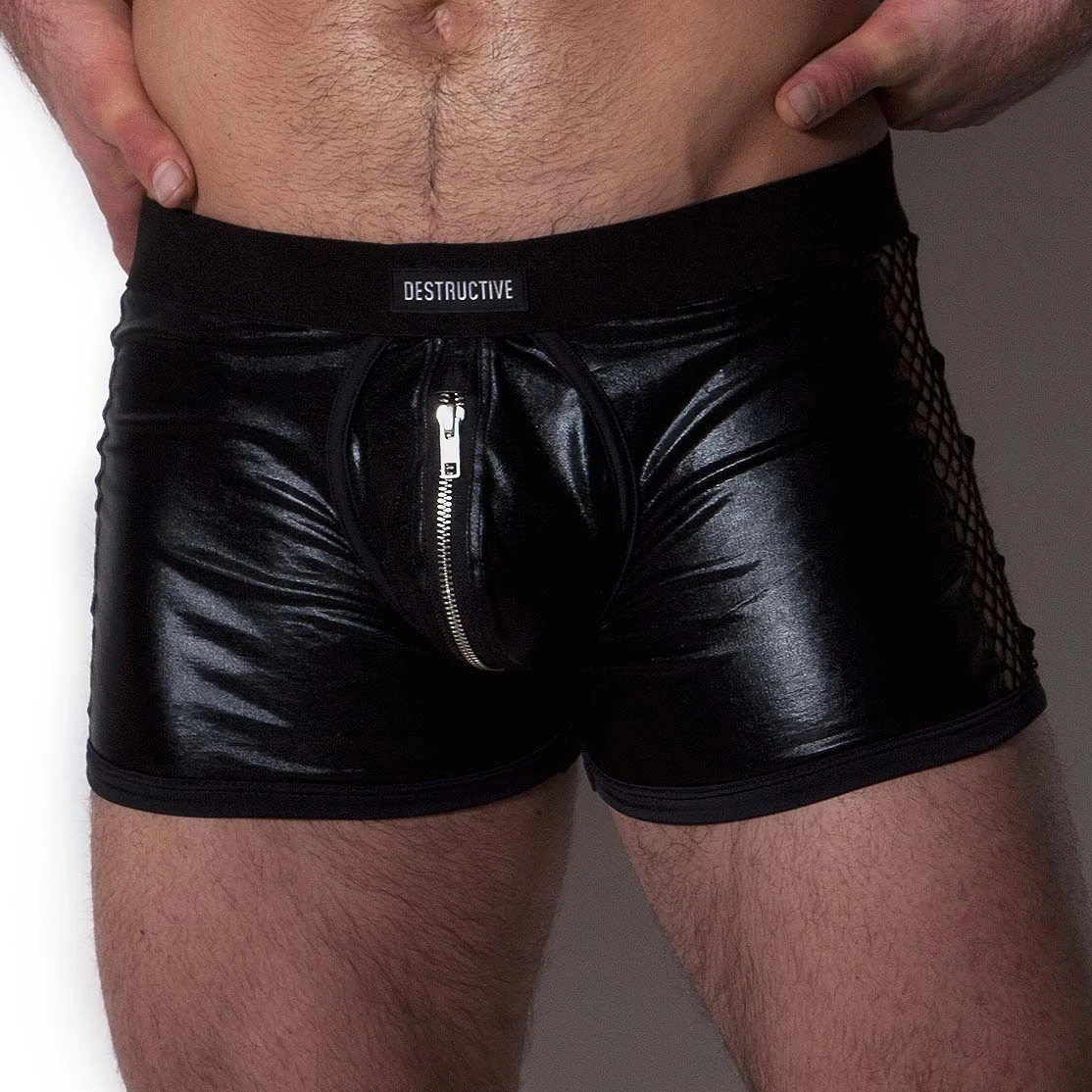 Short DESTRUCTIVE 1DSH02. Short très sexy avec deux fermetures eclairs l’une sur la poche avant, l’autre à l’arrière. Matière brillante. Ceinture élastique. Empiècement en resille de chaque côtés. Logo DESTRUCTIVE en silicone sur la ceinture. Guide des Tailles : S 75-80cm, M 80-90cm, L 90-101cm, XL 101-110cm. 92 % Polyester, 8% Elasthanne.
