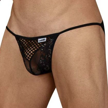 Slip Candyman Tangerine 99430. Slip très sexy avec un mélange de dentelle et de tissu maillé. Fine ceinture élastique. A porter sans modération ! 97% Nylon, 3% Elasthanne.