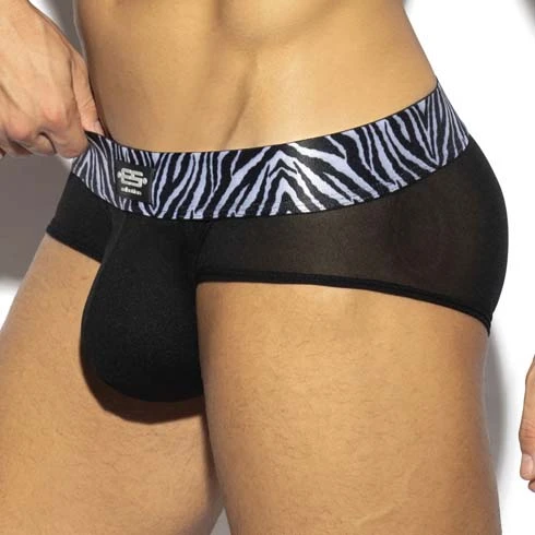 Slip ES Collection Zebra C-Through UN537. Découvrez ce Slip en tulle transparent. Poche frontale Push Up qui vous assure un excellent maintien et vous mettra en valeur. Ceinture élastique avec un imprimé zebré, logotée au nom de la marque. Taille basse et très ajusté. 93% Polyester, 7% Elasthanne.