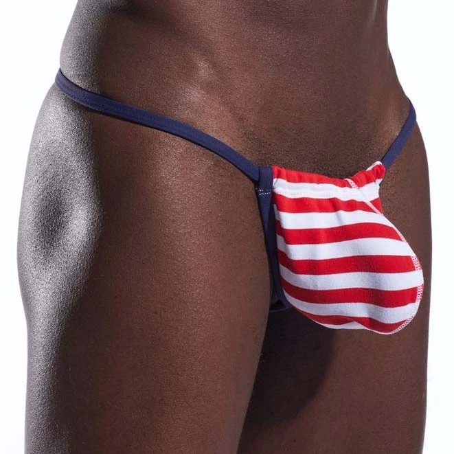 String CockSox Liberty Stripe CX14. Glissez-vous dans cette coupe classique de sous-vêtements Cocksox à lélégance extrême. String ficelle très sexy. Imprimé rayures sur la poche frontale. 92% Supplex, 8% Lycra.