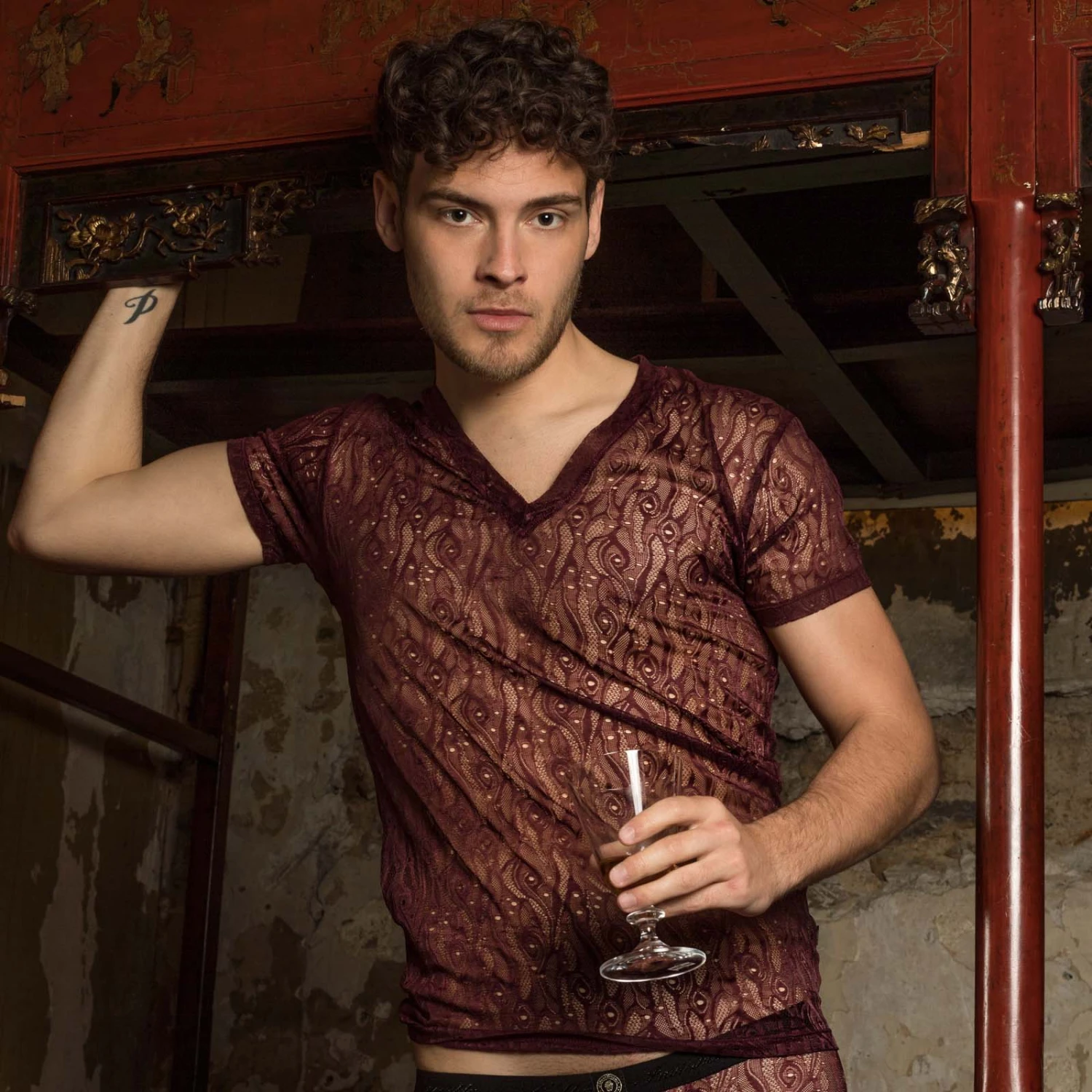 T-Shirt L Homme Invisible Enzo MY73ENZ. DĂ©couvrez le charme irrĂ©sistible de ce t-shirt en dentelle trĂšs fine ornĂ©e de motifs. Col V et manches courtes. Il laisse apparaĂźtre votre peau grĂące Ă sa transparence dĂ©licate et subtile. Le style sĂ©ducteur de ce t-shirt luxueux vous rendra encore plus sexy que vous ĂȘtes. Coupe ajustĂ©e. Une somptueuse collection alliant confort et Ă©lĂ©gance pour ĂȘtre romantique plus que jamais. 77% Polyester, 23% Elasthanne.
